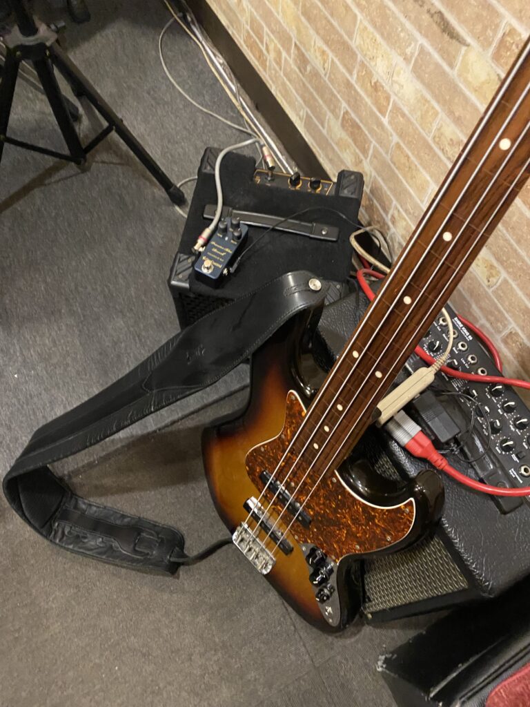 まあこの音を出すには色々あるのですが、まずはエフェクトとかがどうなってるか気になるところですよね??こちらの写真がこの映像を収録した日の機材です。
